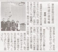 「市道交差点(今治市町谷)で車同士の事故が多発しているので安全対策を講じてほしい」とのご要望を受け、県警に申し入れ。調査の結果、信号機設置が妥当との結論に。そして危険性の高さからスケジュールを前倒しし、年度内に設置を完了することができました。