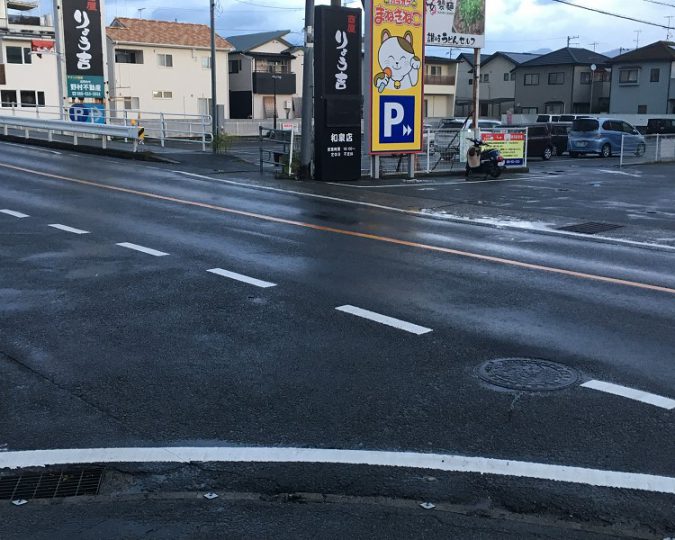 県道16号線三叉路の安全対策として路面標示を改善しました(松山市和泉南)