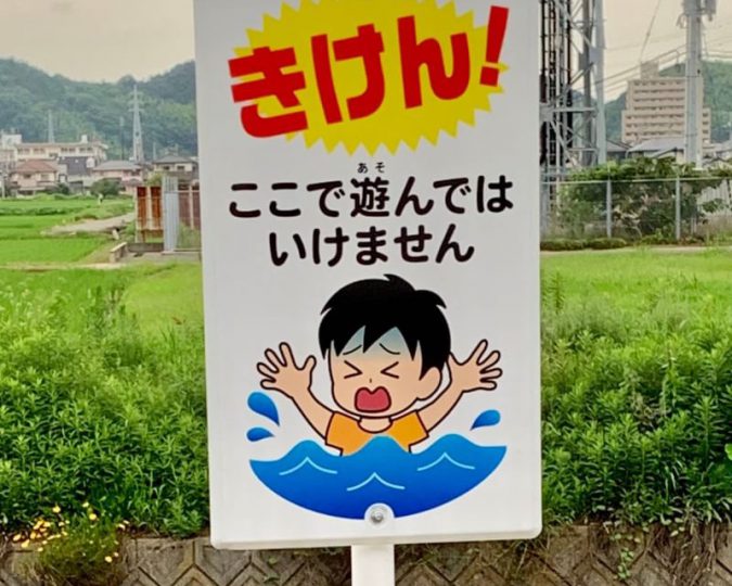 洗地川(松山市余戸西)での水難事故防止のためイラスト看板を設置しました