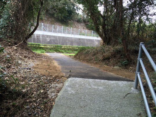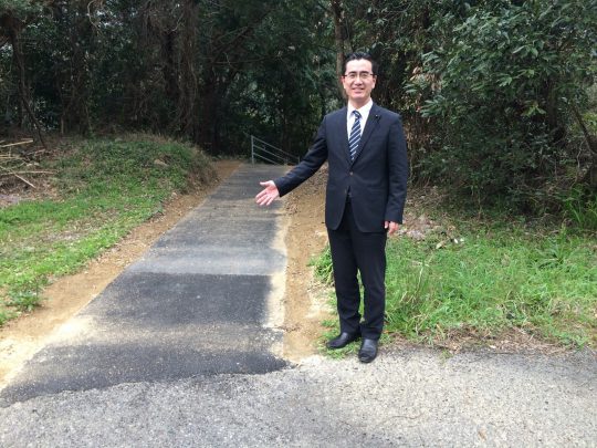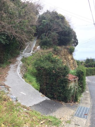 海抜ゼロメートルの集落から高台の国道56号に避難するための道路が