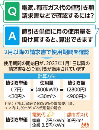 経済産業省によりますと、電気や都市ガス代の請求書や検針票などで、使用期間の開始日が今年1/1以降のものであれば値引きが適用され、請求金額は値引き後の金額が示されています。