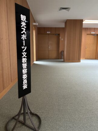 「(略)県議会では先週、常任委員会が行われ、私は所属する観光スポーツ文教警察委員会で種々質疑を行いました。