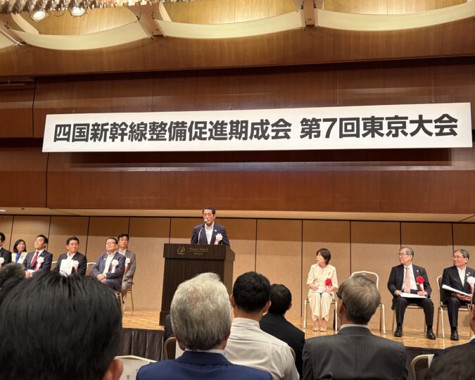 午前、四国新幹線整備促進期成会第7回東京大会に出席。 過去最高となる700人を上回る参加者のもと、来年度予算の大幅拡充や、法定調査費の予算措置、四国圏広域地方計画への書きぶり強化、新大阪駅の結節機能強化に向けた調査の実施など、国に対する4つの要望事項を決議し、45万筆を超える署名とともに、四国4県の知事から自民党整備新幹線等鉄道調査会の稲田朋美会長に手渡されました。