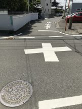 「県道久米垣生線(余戸中4丁目)の交差点にて事故が絶えず安全対策を講じてほしい」とのご要望を受け、県警に申し入れ。その結果、南北の2か所に一時停止線と交通標識が、東西にドット線を設置され、路面に巻き込み外側線が表示されることとなりました。危険交差点の安全対策を1つ、推進することができました。