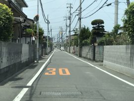 「余戸東3丁目の通学路について、余土中学校の校舎移転に伴い通行量が増大しているため安全対策を講じてほしい」とのご要望を受け、県警に申し入れ。松山市、学校、県警等の協議により、速度表示、路側帯の拡張、ドット線、横断歩道を設置するなど安全対策を推進しました。