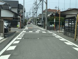 「余戸東3丁目の通学路について、余土中学校の校舎移転に伴い通行量が増大しているため安全対策を講じてほしい」とのご要望を受け、県警に申し入れ。松山市、学校、県警等の協議により、速度表示、路側帯の拡張、ドット線、横断歩道を設置するなど安全対策を推進しました。