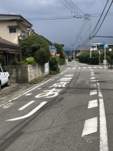 「県道190号線(松山市東垣生町)の東垣生バス停交差点は小学校の児童の通学路で、毎日100人以上が横断している。東進する車からすれば当該交差点はやや左にカーブしており見通しが悪く、子どもたちからすれば交差点右側からくる車の確認がしづらいため、車、児童ともヒヤリとすることが多い。朝は父兄が見守り活動をしているので安心だが、それ以外の曜日・時間帯ではかなり不安が残る。信号機設置など安全対策を講じてほしい。」とのご要望を受け、中予地方局に申し入れ。調査の結果、歩行者のたまり場と柱設置場所がないため信号機設置は不可だが、東進する車への注意喚起のため、路面に「交差点あり」と表示し対策を行なうこととなりました。