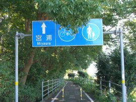 「県道21号線(今治市上浦町井口の本川橋周辺)の自転車道にかかる雑草を除去してほしい」とのご要望を受け、土木部に申し入れ。サイクリングシーズンにも鑑み早速、除去作業を実施しました。