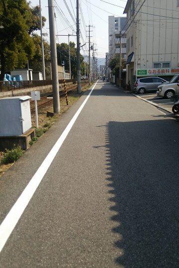 伊予鉄線路沿い市道の白線を設置しました(松山市平和通)