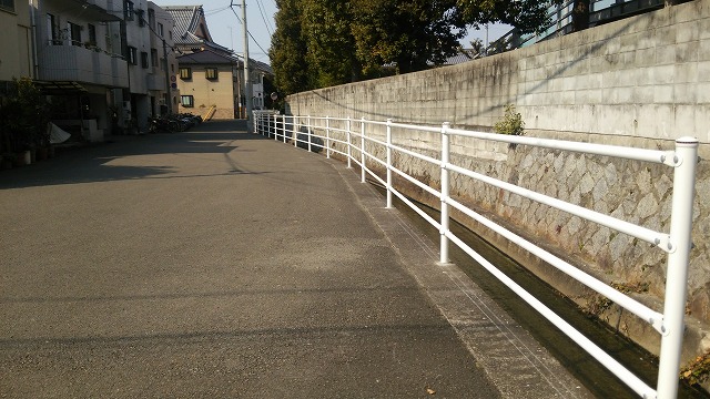 河川への転落防止のためガードパイプを新設しました(松山市鉄砲町)