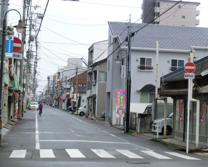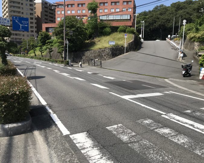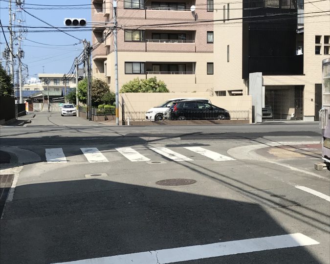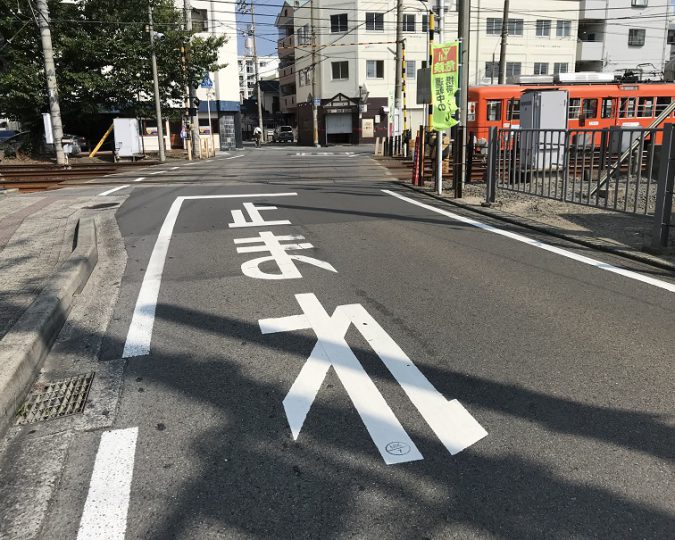 民地と市道が接続する路面標示を改善しました(松山市萱町)