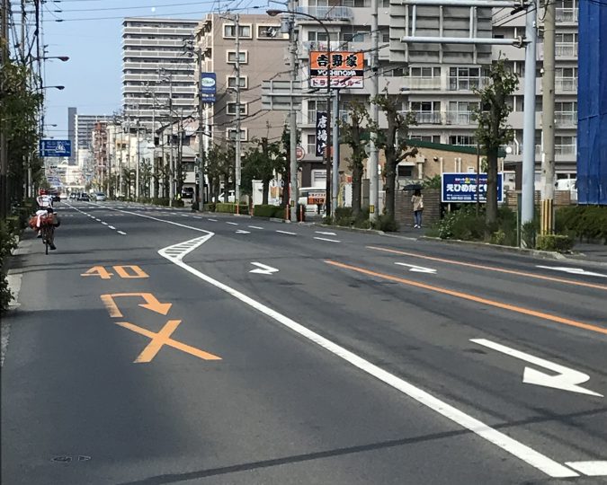県道187号線(松山市道後姫塚)の安全対策として路面表示を推進しました