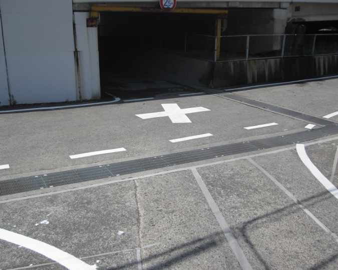 民地と市道が接続する路面標示を改善しました(松山市萱町)